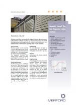 A NoiseTrap® panel is a completely galvanized steel construction that consists of coupled resonator elements that attenuate airborne noise; as such a NoiseTrap® panel has no acoustic infill or lining materials to provide acoustic performance.
