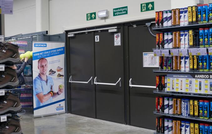 In order to protect its properties against burglary, Decathlon requires a high level of burglar resistance on the various entrance doors. This also applies to the escape doors. An escape door with an anti-panic function must be easy to open from the inside in the event of a calamity, but because of burglary protection it must be difficult to open from the outside. This special combination may sound contradictory, but Merford has been specialising for many years in combining these properties in one door.
