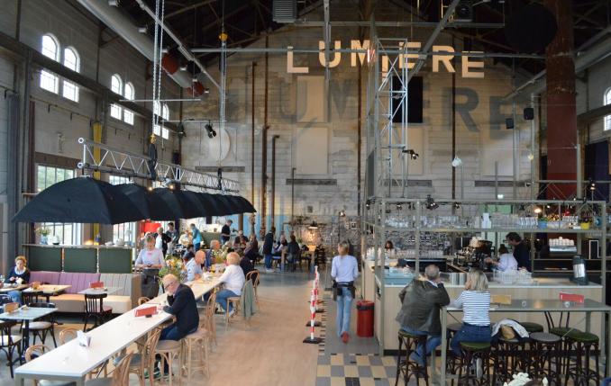 On Friday 14 and Saturday 15 October 2016, Lumière Cinema in Maastricht officially opened the doors of its brand new film house. It is located in the former boiler room of the Sphinx factories on the Boschstraat. In the central hall, where steam and electricity used to be generated for the factories, a café/restaurant has been set up with a view over the inner harbour of the Bassin. To create a comfortable and pleasant acoustic climate in this space, the designers Dorine de Vos and Rosie Stapel, a.k.a. Roos & de Vos, asked Merford to help them to create an acoustic plan. The building project was a combination of restoration, renovation and new construction, where the monumental elements of the boiler house were an important element. In the café/restaurant, Roos & de Vos wanted to leave the steel construction and piping in sight as much as possible.