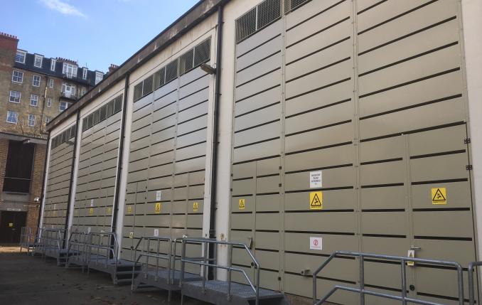The four transformers that caused inconvenience in London are housed in concrete compartments with an opening for natural ventilation on one side. The project involved the installation of acoustic barriers to close the compartments and stop the noise from escaping. It was necessary that the solution not only offered acoustic mitigation, but also provided sufficient ventilation for the cooling of the equipment.