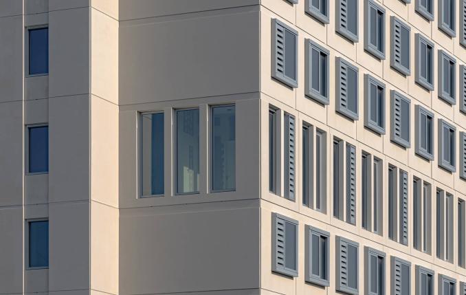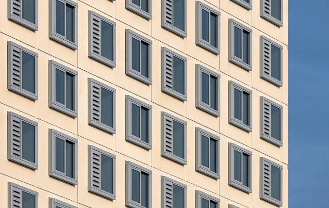 In totaal zijn er 44 AKR-akoestische spuiventilatie roosters op maat gemaakt en in de gevel van The Jay geplaatst. De akoestische roosters zijn ideaal voor dit soort projecten door de geringe luchtweerstand en minimale inbouwdieptes. Bovendien zijn de roosters ook regenwerend, wat wel zo fijn is voor in huis. De custom AKR-roosters zijn geplaatst in de dove gevel van The Jay waar de comfortbox zich bevindt. De bewoners kunnen op deze manier de ruimte goed kortstondig geluidsluw ventileren.