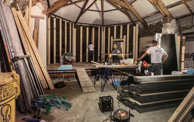 In 2020 werd gestart met de renovatie van het pand. Het doel was om de locatie volledig te renoveren. Dit resulteerde in het feit dat enkel nog de buitenmuren overeind stonden. Voordat er gestart kon worden met het renovatieproject, werd er een onderzoek ingesteld hoe er voldaan kon worden aan de geluidseisen en wensen. De klant wilde echter nog een stapje verder gaan en stelde de vraag ‘hoe kunnen we de geluidswering maximaal krijgen?’. Deze vraag kwam voort uit het feit dat het theater een aanpandige woning heeft, waar de keuken aan het theater grenst.
