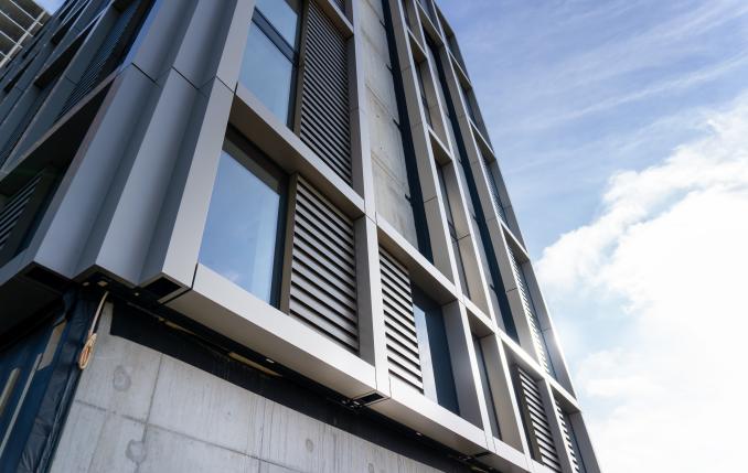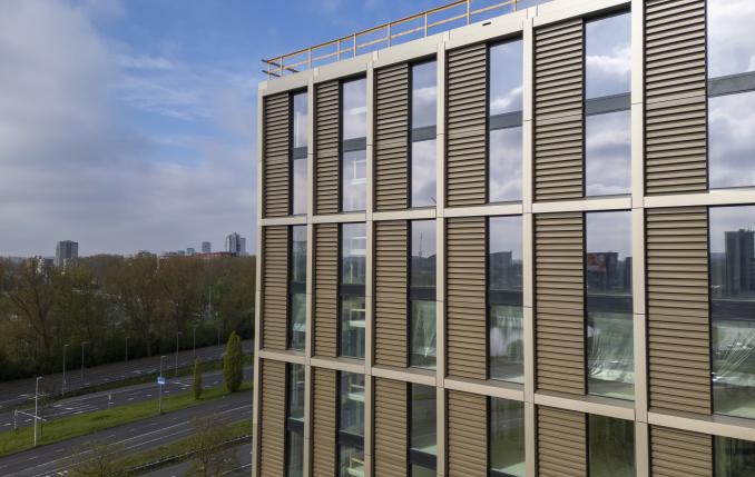 Je rijdt de Van Brienenoordbrug over richting Rotterdam en in je linkerooghoek verschijnt het nieuwe Canvas Living wooncomplex. Gelegen in Brainpark, een locatie die de aankomende jaren zal veranderen van kantorenpark naar een combinatie van prettig wonen, werken, studeren en recreëren voor studenten en jonge professionals. Het wooncomplex, bestaande uit 614 woningen, is nog in ontwikkeling, maar de eerste lagen krijgen al hun uiteindelijke schil, die is voorzien van de akoestische ventilerende roosters van Merford.